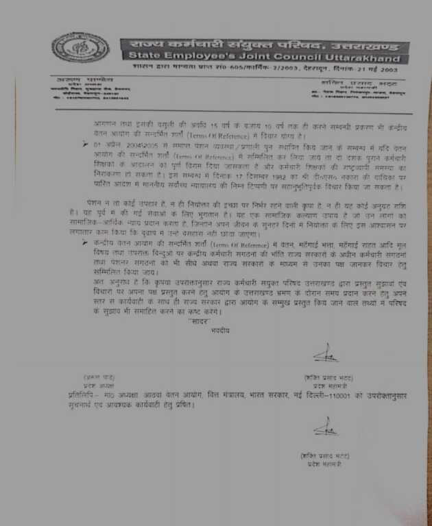 राज्य कर्मचारी संयुक्त परिषद, उत्तराखण्ड ने आगामी आठवें वेतन आयोग (8th Pay Commission) की ‘संदर्भित शर्तों’ (Terms of Reference) को अंतिम रूप दिए जाने के संबंध में सचिव, वित्त विभाग, उत्तराखण्ड शासन के माध्यम से भारत सरकार को महत्वपूर्ण सुझाव प्रेषित किए हैं। परिषद ने स्पष्ट किया है कि यद्यपि वेतन आयोग केंद्र का विषय है, किंतु उत्तराखण्ड जैसे विषम भूगोल वाले राज्य के कार्मिकों का भविष्य इन्हीं सिफारिशों पर टिका होता है।
