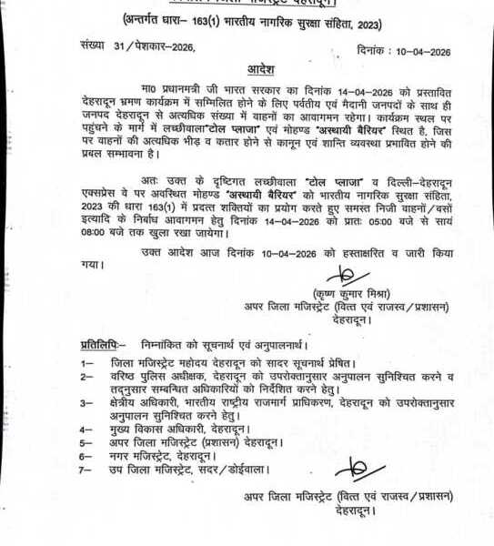 देहरादून शहर को जाम से मुक्त रखने को डीएम के आदेश; 14 अप्रैल को...