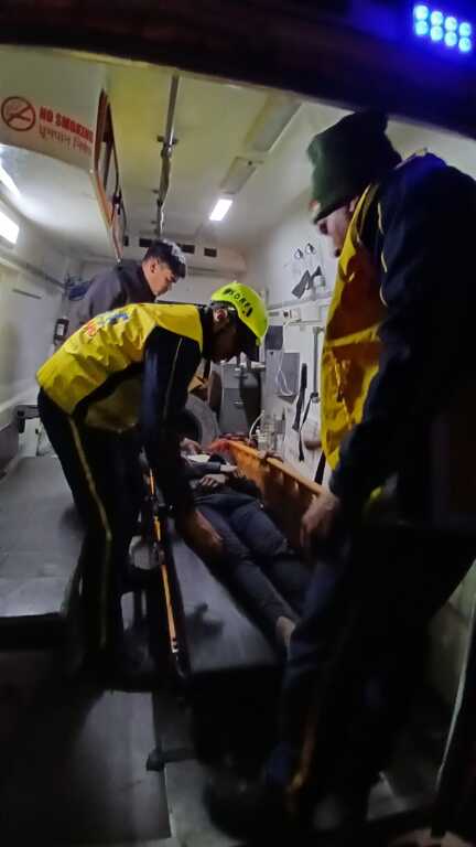उक्त सूचना पर SDRF पोस्ट खैरना से इंस्पेक्टर श्री राजेश जोशी के नेतृत्व में टीम आवश्यक रेस्क्यू उपकरणों के साथ घटनास्थल के लिए रवाना हुई। घटनास्थल पर पहुंचकर टीम द्वारा रोप रेस्क्यू तकनीक का प्रयोग करते हुए खाई में गिरे तीनों घायलों को सुरक्षित रूप से सड़क तक पहुंचाया गया तथा तत्पश्चात 108 एम्बुलेंस सेवा के माध्यम से उपचार हेतु अस्पताल भेजा गया।