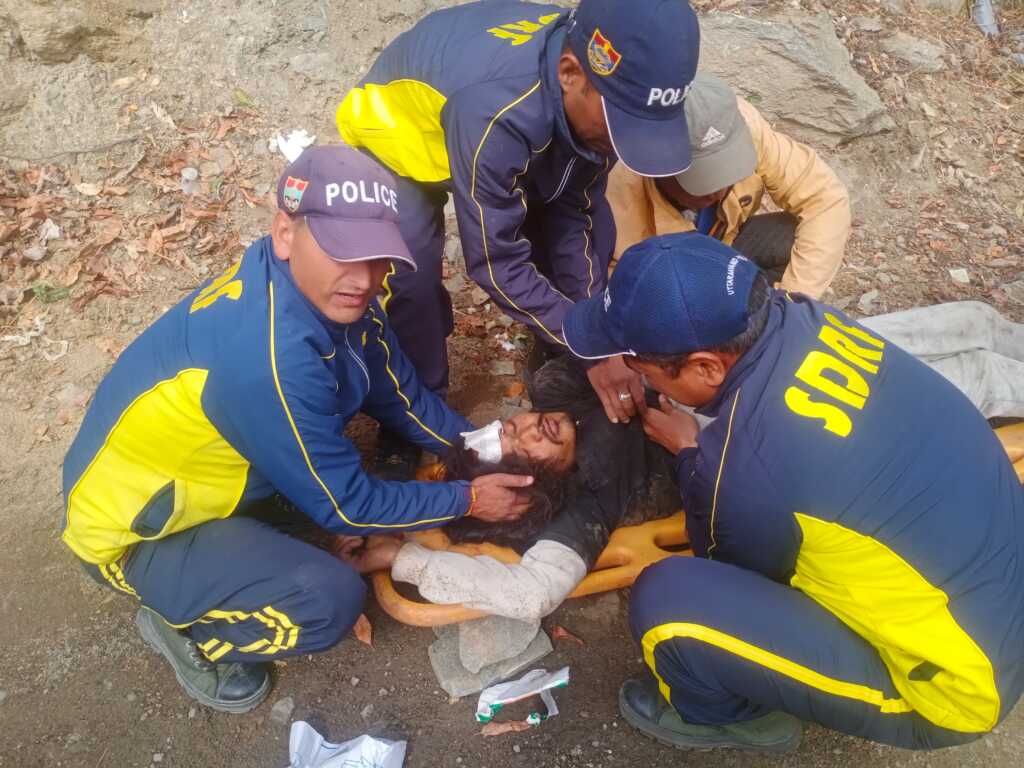 SDRF टीम द्वारा मौके पर पहुंचकर पाया कि *अर्जुन गिरी पुत्र मोतीराम, उम्र 20 वर्ष, नेपाली मूल, वर्तमान पता फाटा,* जो फाटा से त्रियुगीनारायण की ओर जा रहा था, त्रियुगीनारायण रोड पर स्वदेशइन होटल के पास सड़क से लगभग 100 मीटर नीचे खाई में गिर गया था। गिरने के कारण उसके सिर में गंभीर चोट आई थी एवं वह अचेत अवस्था में था।
