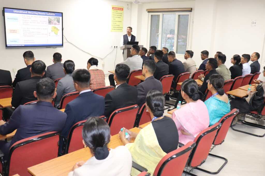 प्रशिक्षु अधिकारियों को उत्तराखण्ड में घटित प्रमुख आपदाओं जैसे *सिल्क्यारा टनल रेस्क्यू, धाराली एवं रेणी घटनाओं* के संबंध में भी विस्तार से जानकारी दी गई। इन घटनाओं के दौरान उत्पन्न परिस्थितियों—जैसे दुर्गम पहाड़ी क्षेत्र, प्रतिकूल मौसम, संचार की चुनौतियाँ एवं समय की संवेदनशीलता—के बीच एसडीआरएफ द्वारा किस प्रकार योजनाबद्ध तरीके से सर्च एवं रेस्क्यू ऑपरेशन संचालित किए गए, इस पर विस्तार से प्रकाश डाला गया। साथ ही मल्टी-एजेंसी समन्वय, चरणबद्ध सर्चिंग, जोखिम आकलन, आधुनिक तकनीकों एवं उपकरणों के प्रभावी उपयोग तथा त्वरित निर्णय क्षमता के माध्यम से किस प्रकार राहत एवं बचाव कार्यों को सफलतापूर्वक संपन्न किया गया, इसके व्यावहारिक उदाहरण भी साझा किए गए, जिससे प्रशिक्षु अधिकारियों को आपदा प्रबंधन के वास्तविक स्वरूप की गहन समझ प्राप्त हुई।