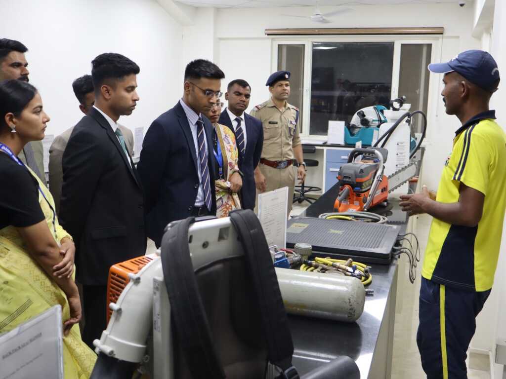 इसके अतिरिक्त, प्रशिक्षु अधिकारियों को *आपदा के दौरान उपयोग में लाए जाने वाले आधुनिक उपकरणों एवं संसाधनों की कार्यप्रणाली एवं उनके व्यावहारिक उपयोग* का प्रदर्शन कराया गया। एसडीआरएफ के प्रशिक्षित कार्मिकों द्वारा प्रत्येक उपकरण का डेमो प्रस्तुत किया गया, जिससे अधिकारियों को इनकी वास्तविक उपयोगिता का प्रत्यक्ष अनुभव प्राप्त हुआ।