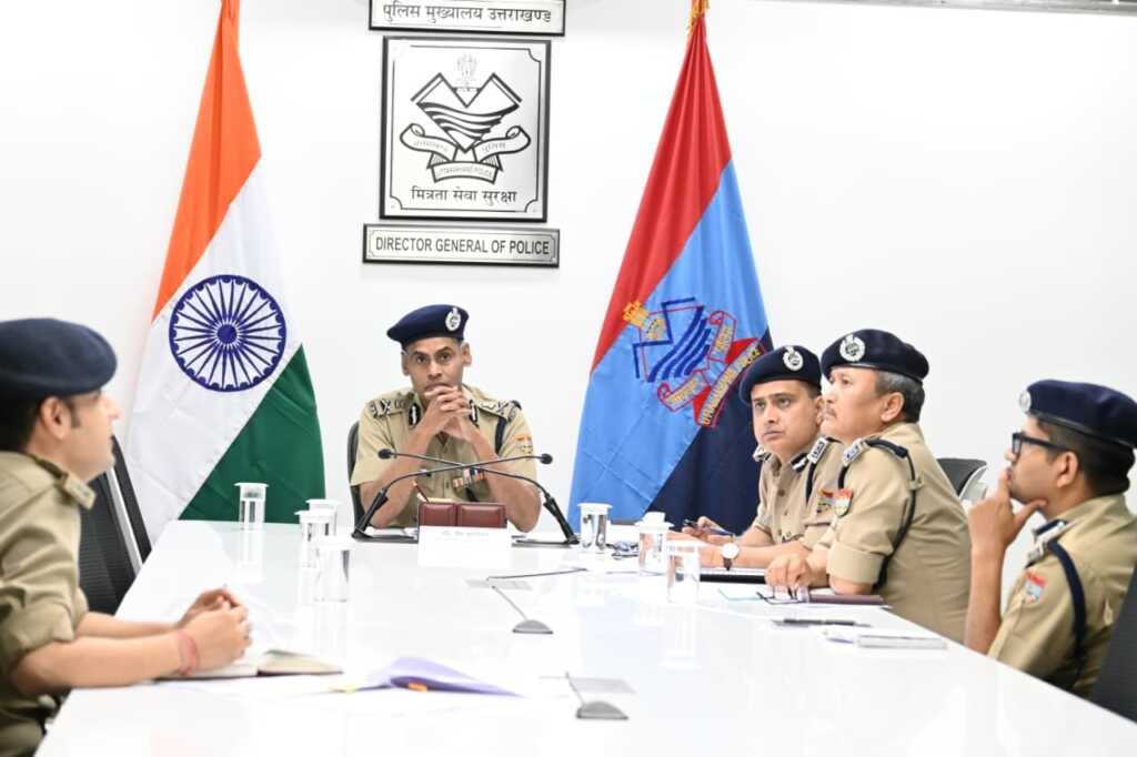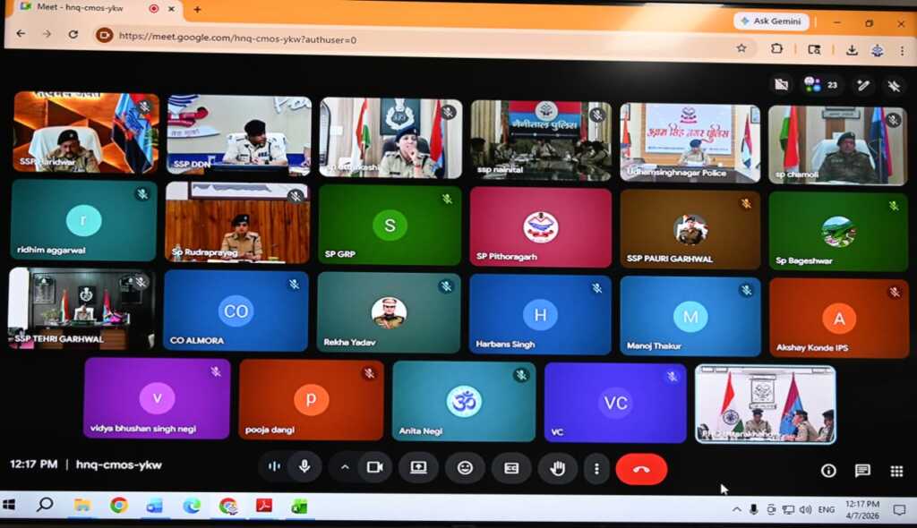*डॉ० वी० मुरूगेशन, अपर पुलिस महानिदेशक, अपराध एवं कानून व्यवस्था, उत्तराखण्ड* द्वारा आज पुलिस मुख्यालय स्थित सभागार में गढ़वाल एवं कुमाऊँ रेंज पुलिस महानिरीक्षकों सहित समस्त जनपदों के वरिष्ठ/पुलिस अधीक्षकों के साथ वीडियो कॉन्फ्रेंसिंग के माध्यम से प्रचलित *पुलिस सत्यापन की कार्यवाही, महिला सुरक्षा हेतु ‘गौरा शक्ति मॉड्यूल’ तथा गुमशुदा की तलाश हेतु ‘ऑपरेशन स्माईल’* के अन्तर्गत की जा रही कार्यवाहियों की विस्तृत समीक्षा की गई।