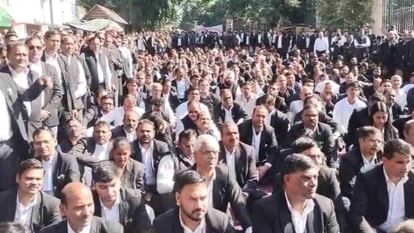 अधिवक्ताओं का विरोध-प्रदर्शन जारी, आज से काम भी ठप रखने का लिया निर्णय, तीन घंटे तक जाम सड़क