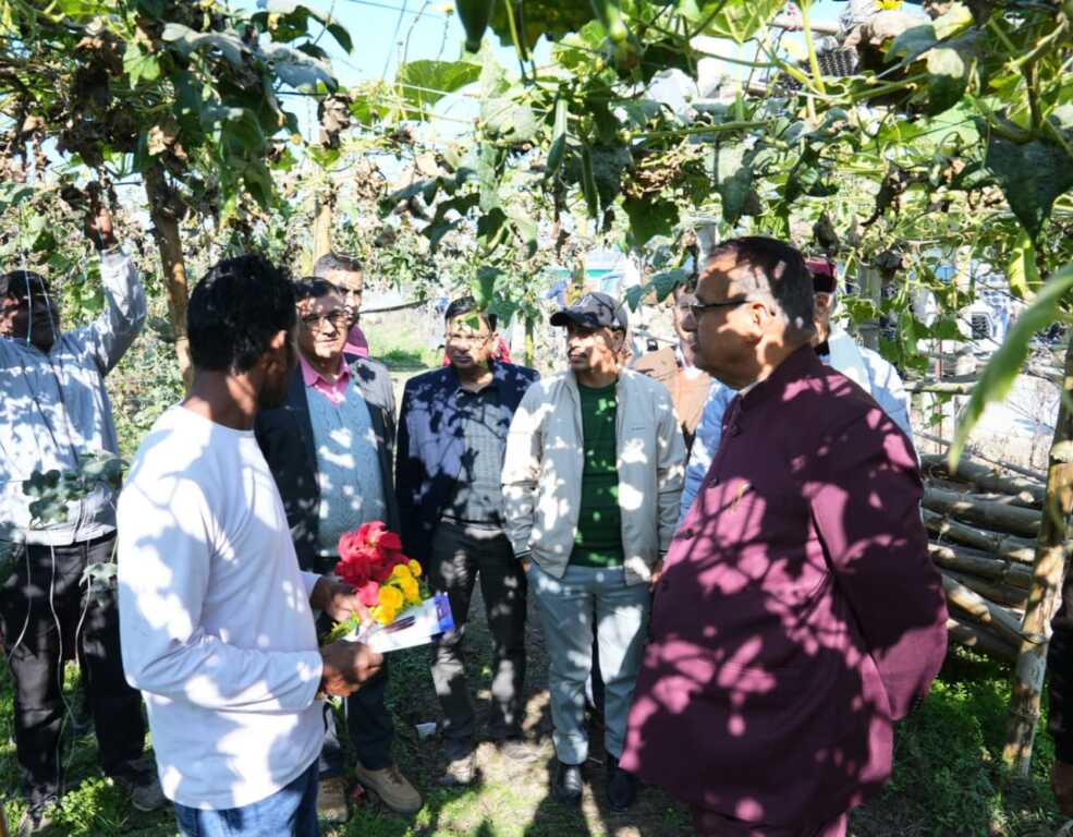 कृषि मंत्री गणेश जोशी ने खेतों में फसलों का अवलोकन करते हुए किसानों से उत्पादन लागत, सिंचाई व्यवस्था, बीज, खाद, कीटनाशक और विपणन से जुड़ी चुनौतियों पर किसानों से चर्चा की। कृषि मंत्री गणेश जोशी ने मौके पर उपस्थित अधिकारियों को किसानों के साथ वर्क शॉप करने और किसानों को गेहूं, धान इत्यादि फसलों के अलावा जिन क्रॉप्स में किसानों को अधिकतम के लाभ पहुंचे उसके लिए प्रेरित किया जाए। इस दौरान उन्होंने फॉर्म मशीनरी बैंक का भी अवलोकन किया।