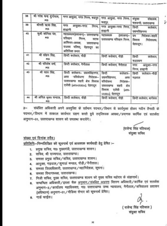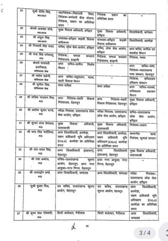 उत्तराखंड की ब्यूरोक्रेसी में बड़ा बदलाव! बदले गए कई जिलों के डीएम। वंदना सिंह की जगह ललित मोहन रयाल होंगे नैनीताल के नए डीएम