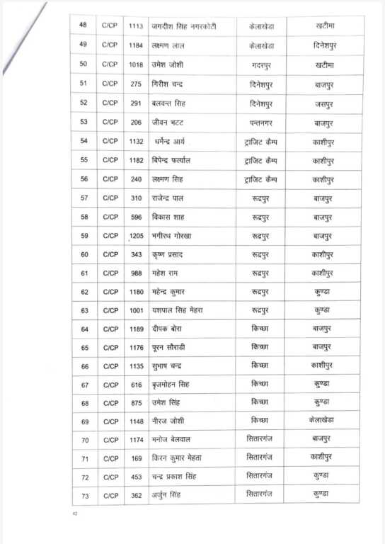ऊधम सिंह नगर में कानून व्यवस्था को मजबूत और पारदर्शी बनाने के लिए एसएसपी अजय गणपति ने बड़ा प्रशासनिक फैसला लिया है। लंबे समय से एक ही स्थान पर तैनात पुलिसकर्मियों का व्यापक स्तर पर तबादला किया गया है।