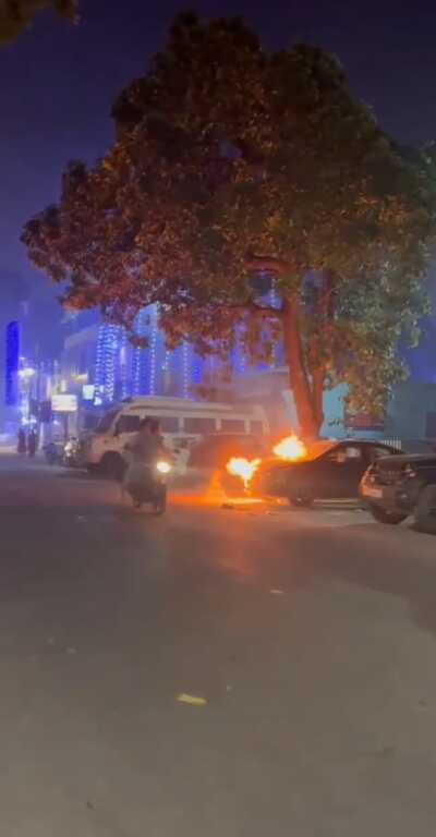 इधर आर्यनगर क्षेत्र में सड़क किनारे खड़ी कार में अचानक लगी आग, आसपास अफरा-तफरी का माहौल।