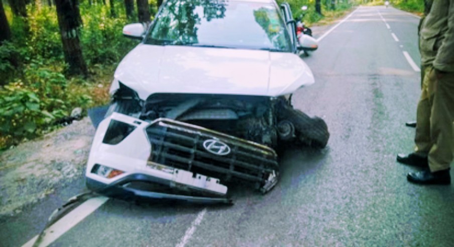 थानों मार्ग से एयरपोर्ट की ओर जा रही कार भूमिया मंदिर के पास क्रैश बैरियर से टकराई, दो लोग थे सवार