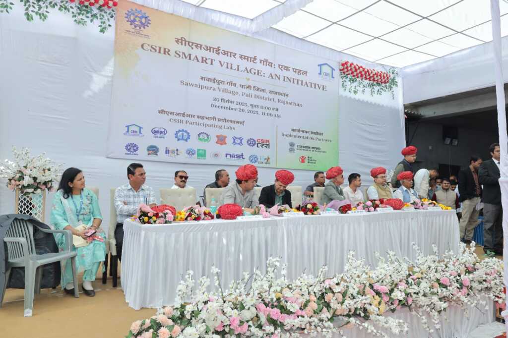 भारत सरकार के विज्ञान एवं प्रौद्योगिकी मंत्रालय के अंतर्गत वैज्ञानिक तथा औद्योगिक अनुसंधान परिषद (CSIR) द्वारा संचालित “स्मार्ट गाँव” मिशन मोड परियोजना का शुभारंभ आज राजस्थान के पाली जिले के सवाईपुरा गाँव में किया गया। यह पहल प्रधानमंत्री के “विकसित भारत- 2047” के विज़न के अनुरूप ग्रामीण भारत के समग्र एवं सतत विकास की दिशा में एक महत्वपूर्ण कदम है। इस मिशन का औपचारिक शुभारंभ सांसद, पाली, श्री पी. पी. चौधरी, तथा डॉ. (श्रीमती) एन. कलैसेल्वी, महानिदेशक, सीएसआईआर एवं सचिव, डीएसआईआर, नई दिल्ली द्वारा किया गया। इस अवसर पर श्री भीमराज भाटी, विधायक, पाली विधानसभा क्षेत्र; प्रो. प्रदीप कुमार रमनचरला, निदेशक, सीएसआईआर–केंद्रीय भवन अनुसंधान संस्थान; डॉ. पी. सी. पंचारिया, निदेशक, सीएसआईआर–सीरी सहित जिला प्रशासन के वरिष्ठ अधिकारी, ग्राम प्रतिनिधि, गैर-सरकारी संगठनों के प्रतिनिधि तथा विभिन्न सीएसआईआर प्रयोगशालाओं के वैज्ञानिक उपस्थित रहे।