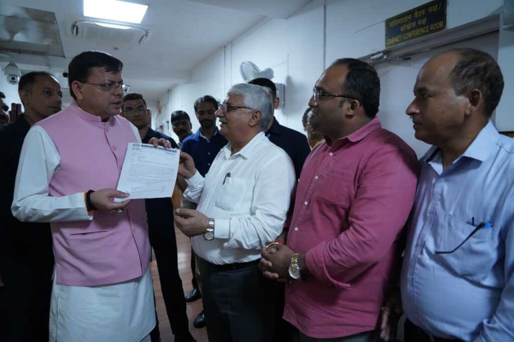 राज्य कर्मचारी संयुक्त परिषद उत्तराखण्ड के प्रदेश अध्यक्ष अरुण पाण्डे, प्रदेश महामंत्री शक्ति प्रसाद भट्ट सहित प्रदेश कोषाध्यक्ष रविन्द्र चौहान द्वारा आज माननीय मुख्यमंत्री श्री पुष्कर सिंह धामीं से मिलकर उत्तराखण्ड राज्य के कार्मिकों को केन्द्र सरकार की भांति बढी हुई दरों पर महंगाई भत्ते एवं गतवर्ष की भांति राज्य कार्मिकों को दीपावली से पहले बोनस का भुगतान किए जाने का अनुरोध किया है ।