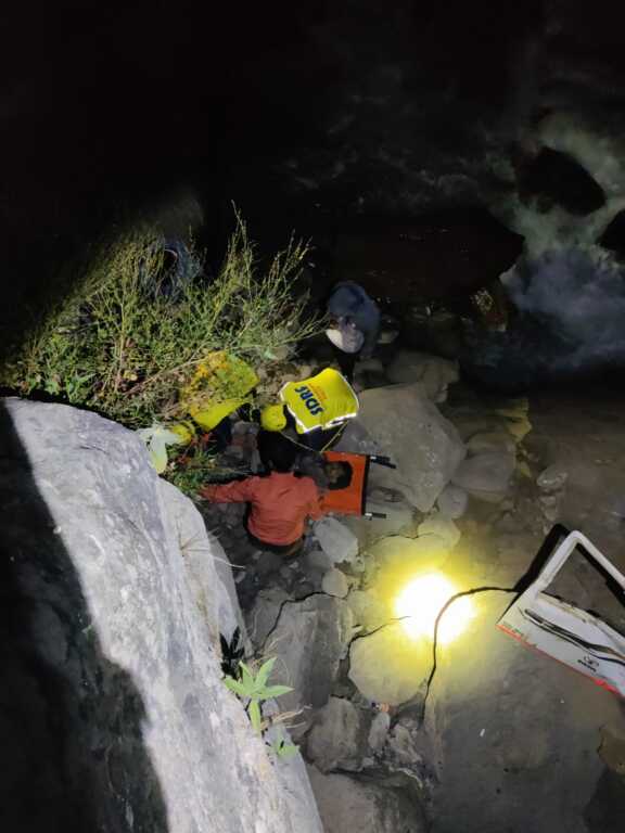 SDRF टीम द्वारा कठिन पर्वतीय मार्ग पर पहुँचकर त्वरित रेस्क्यू अभियान संचालित किया गया। टीम ने गहरी खाई में उतरकर राहत एवं बचाव कार्य किया तथा वाहन में सवार व्यक्तियों की खोज की।