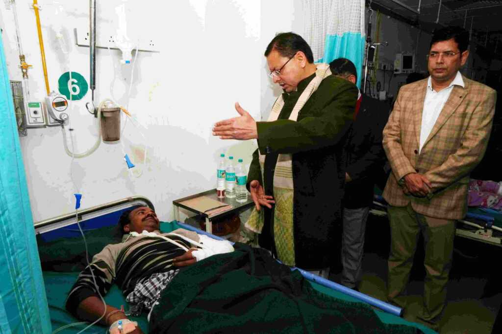 *क्वानू–मीनस मोटर मार्ग दुर्घटना में घायल यात्रियों का हाल पूछने दून अस्पताल पहुँचे मुख्यमंत्री धामी*