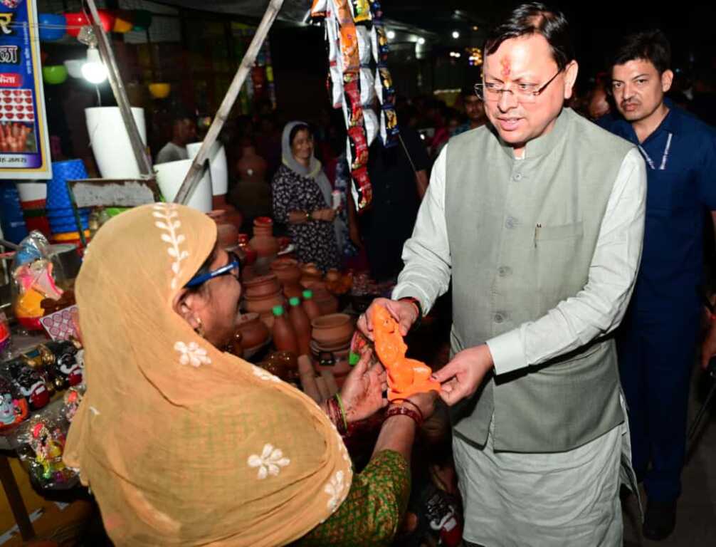 मुख्यमंत्री श्री पुष्कर सिंह धामी ने आज अपने गृह क्षेत्र खटीमा में ‘स्वदेशी अपनाओ’ अभियान के तहत पारंपरिक मिट्टी के दियों और स्थानीय रूप से निर्मित वस्तुओं की खरीदारी की।