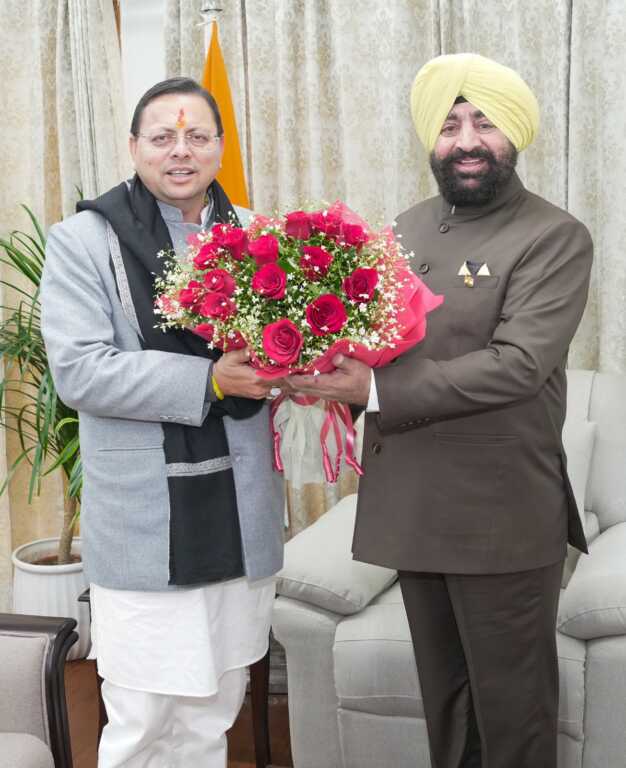 राज्यपाल लेफ्टिनेंट जनरल गुरमीत सिंह (से नि) से शनिवार को लोक भवन में मुख्यमंत्री पुष्कर सिंह धामी ने शिष्टाचार भेंट की। इस अवसर पर उन्होंने राज्य के समग्र विकास, विभिन्न विकासात्मक योजनाओं तथा समसामयिक विषयों पर विचार-विमर्श किया।