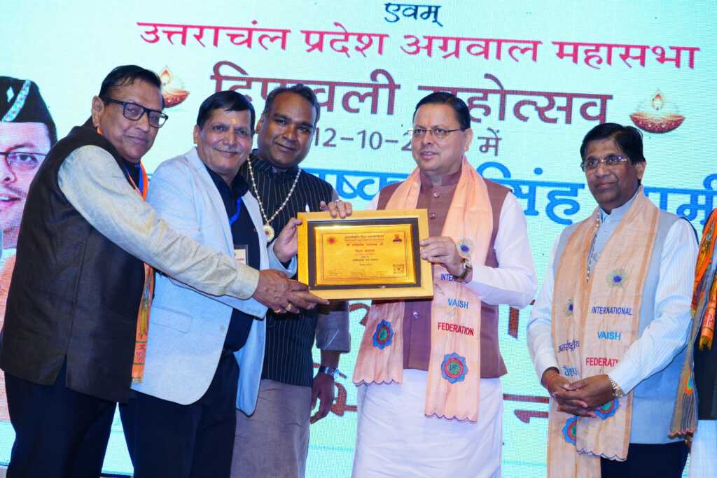 इस अवसर पर मुख्यमंत्री श्री पुष्कर सिंह धामी ने महाराजा अग्रसेन जी को नमन करते हुए उपस्थित जनो को दीपावली की अग्रिम बधाई एवं शुभकामनाएं देते हुए कहा कि दीपावली का पर्व हम सभी के जीवन में सकारात्मक ऊर्जा का संचार करने का एक विशिष्ट माध्यम है, जो हमें अंधकार से प्रकाश की ओर और बुराई से अच्छाई की ओर जाने की प्रेरणा देता है।