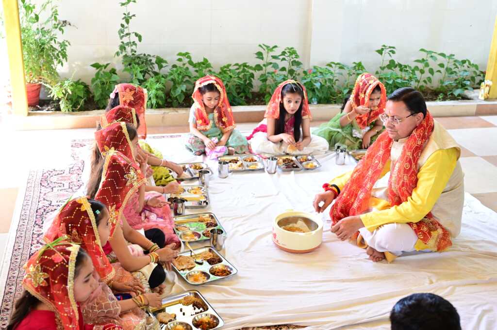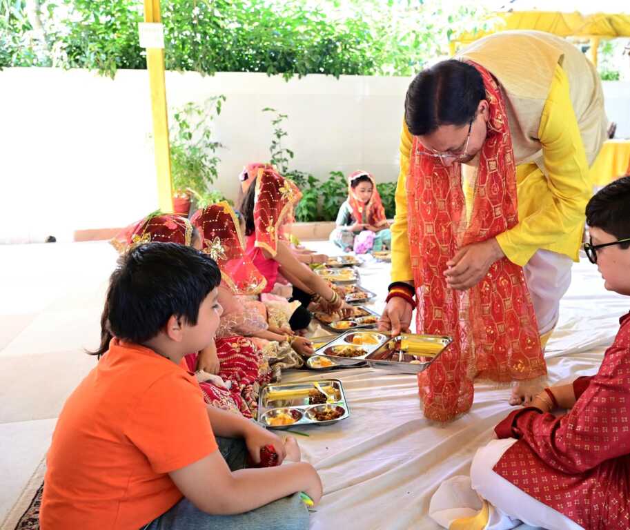 रामनवमी के शुभ अवसर पर मुख्यमंत्री आवास में मुख्यमंत्री श्री पुष्कर सिंह धामी ने कन्या पूजन कर देवी स्वरूपा बालिकाओं का सम्मान किया। इस दौरान उन्होंने पारंपरिक रीति-रिवाजों के अनुसार कन्याओं को भोजन कराया तथा उनका आशीर्वाद प्राप्त किया।