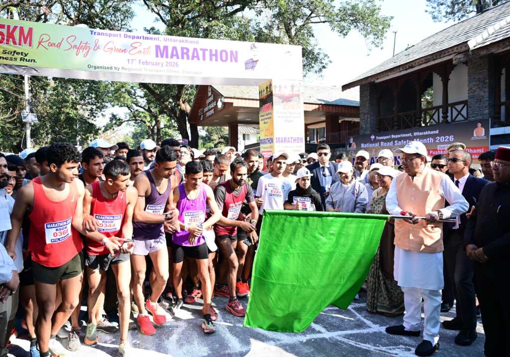 मुख्यमंत्री पुष्कर सिंह धामी ने मंगलवार को कैंट रोड, देहरादून से सड़क सुरक्षा जागरूकता एवं पर्यावरण संरक्षण के उद्देश्य से आयोजित 5 किलोमीटर दौड़ का फ्लैग ऑफ किया। विभिन्न आयु वर्गों के बड़ी संख्या में प्रतिभागियों ने इस दौड़ में भाग लिया। इस अवसर पर मुख्यमंत्री श्री धामी ने सभी प्रतिभागियों को सड़क सुरक्षा नियमों के पालन एवं पर्यावरण संरक्षण के प्रति जागरूकता बढ़ाने की शपथ भी दिलाई।