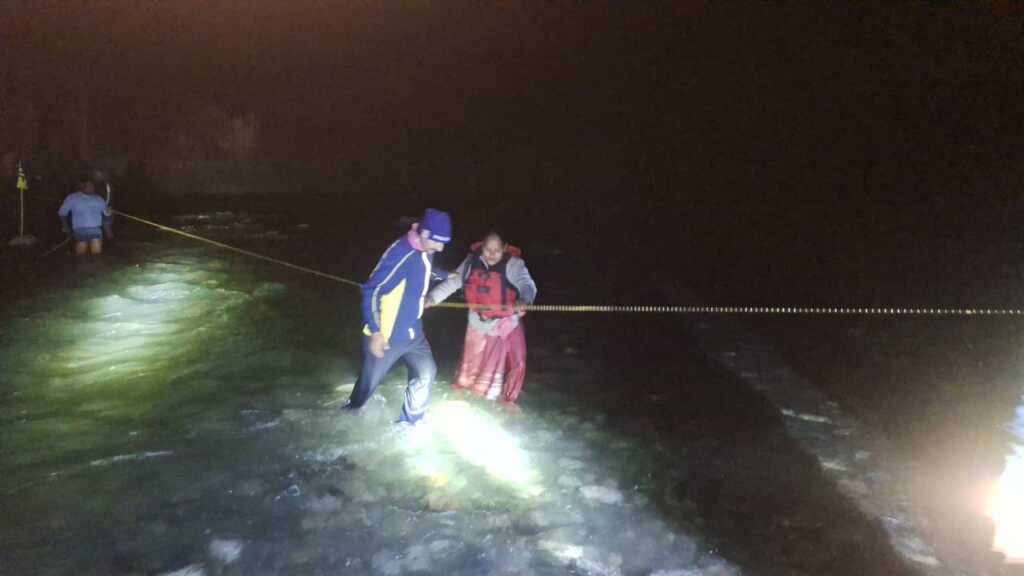 सूचना मिलते ही SDRF टीम डाकपत्थर ASI सुरेश तोमर के हमराह तत्काल घटनास्थल के लिए रवाना हुई। घटनास्थल पर उफनती नदी और तेज बहाव के बीच SDRF टीम ने सूझबूझ, साहस और पेशेवर दक्षता का परिचय देते हुए 05 लोगों को सकुशल बाहर निकालकर सभी को सुरक्षित स्थान पर पहुंचाया।