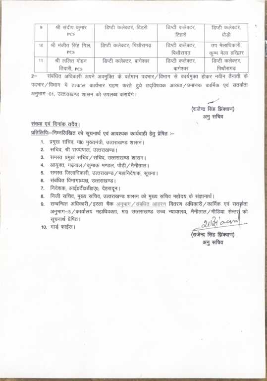 श्री ललित मोहन तिवारी को डिप्टी कलेक्टर पिथौरागढ़ नियुक्त किया गया है।