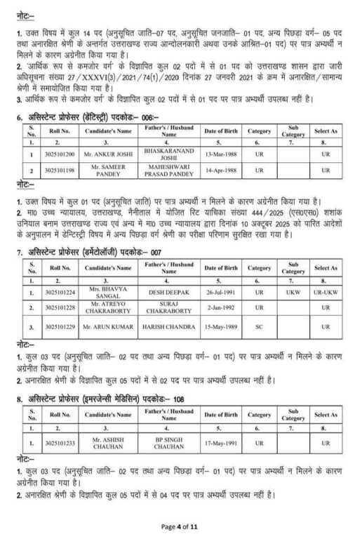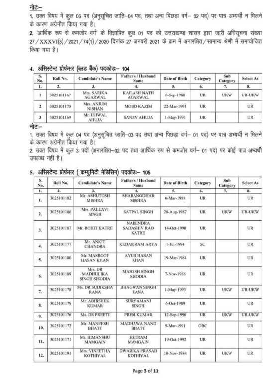 चिकित्सा शिक्षा विभाग के अंतर्गत राजकीय मेडिकल कॉलेजों में असिस्टेंट प्रोफेसर के रिक्त 439 पदों पर आयोजित सीधी भर्ती परीक्षा का परिणाम उत्तराखंड चिकित्सा सेवा चयन बोर्ड द्वारा घोषित कर दिया गया है।