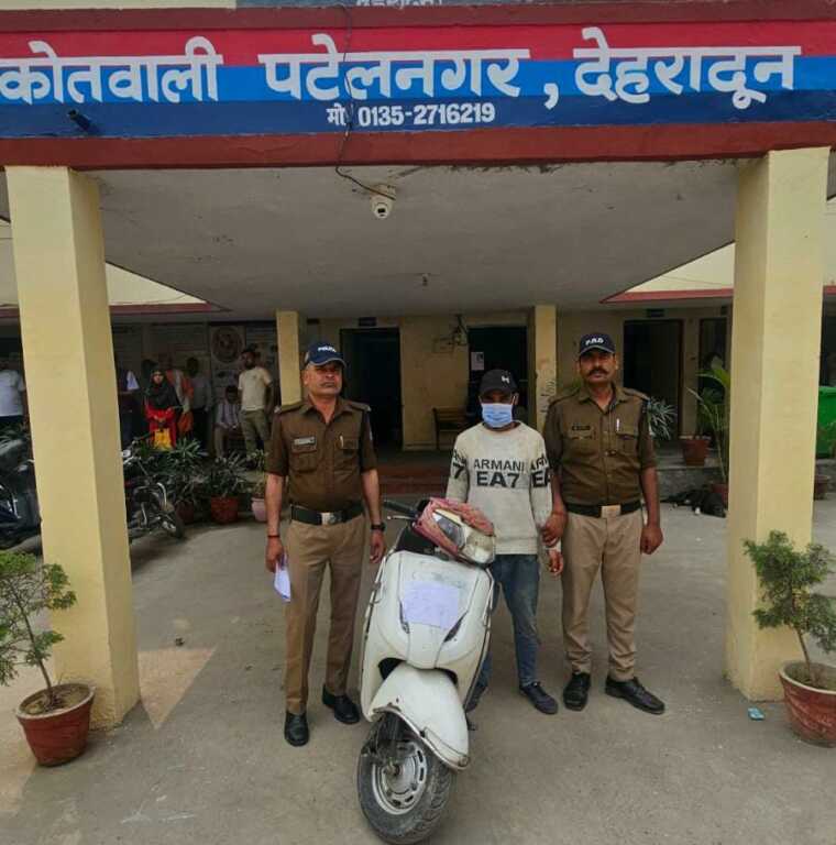 वाहन चोरी की घटना के अनावरण हेतु एसएसपी देहरादून द्वारा दिये गौए निर्देशों पर कोतवाली पटेलनगर पर पुलिस टीम का गठन किया गया, गठित टीम द्वारा घटना स्थल व आसपास आने जाने वाले मार्गों पर लगे सीसीटीवी कैमरो की फूटजो को चैक करते हुए घटना में शामिल संदिग्धों के संबंध में जानकारियां एकत्रित की गई तथा प्राप्त जानकारी के आधार पर कार्यवाही करते हुये घटना में शामिल अभियुक्त वसीम अली पुत्र फरमान अली को दिनाँक 10-03-2026 को आर्मी ग्राउण्ड पटेलनगर से गिरफ्तार किया गया, जिसके कब्जे से घटना में चोरी की गई स्कूटी UK07AJ9904 रंग सफेद बरामद की गयी।