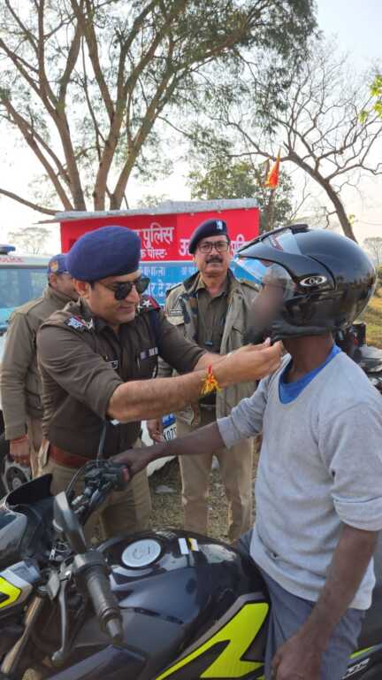 *दोपहिया चालकों को निःशुल्क वितरित किए हेलमेट, चालकों ने हमेशा हेलमेट पहनने का लिया संकल्प*