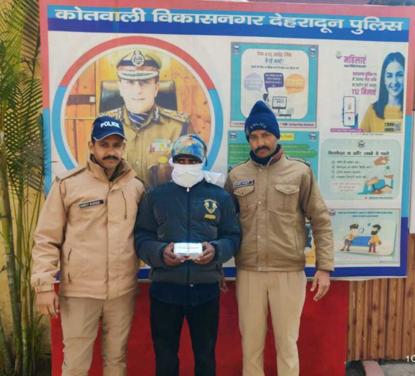 दिनांक -10/01/2026 को विकासनगर पुलिस द्वारा चेकिंग के दौरान अम्बाडी डाकपत्थर क्षेत्र के पास से मुखबिर की सूचना पर एक अभियुक्त इंतजार उर्फ जादू पुत्र सलीम निवासी बस अड्डे के पास जीवन गढ़, थाना विकासनगर, जनपद देहरादून, उम्र 32 वर्ष को लगभग 03 लाख रुपये मूल्य की 9.78 ग्राम अवैध स्मैक के साथ गिरफ्तार किया गया। अभियुक्त के विरुद्ध थाना विकासनगर में अन्तर्गत धारा 8/21 एनडीपीएस एक्ट के अंतर्गत अभियोग पंजीकृत किया गया। गिरफ्तार अभियुक्त कोतवाली विकासनगर का हिस्ट्रीशीटर है, जो पूर्व में भी मादक पदार्थो की तस्करी में जेल जा चुका है। अभियुक्त के विरुद्ध एन0डी0पी0एस0, आर्म्स एक्ट, चोरी तथा अन्य आपराधिक मामलों के लगभग 01 दर्जन अभियोग पंजीकृत हैं ।