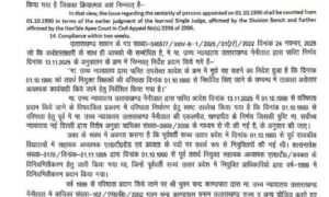 मा० उच्च न्यायालय द्वारा पारित आदेश के अनुपालन में दिनांक 22.11.2025 को आयुक्त दिव्यांगजन उत्तराखण्ड द्वारा प्रकरण की सुनवाई की गयी। सुनवाई के उपरान्त मा० आयुक्त दिव्यांगजन द्वारा जनहित याचिका के संलग्नक-2 में दाखिल सूची की प्रति उपलब्ध कराते हुए सूची में अंकित राज्य चिकित्सा परिषद द्वारा अनर्ह कार्मिक / शिक्षकों के विरुद्ध दिव्यांगजन अधिकार अधिनियम 2016 की धारा-91 के अन्तर्गत महानिदेशक चिकित्सा स्वास्थ्य एवं परिवार कल्याण, उत्तराखण्ड के पत्रांक/6088/ दिनांक 21.03.2022 के संदर्भ में शिक्षा विभाग में निःशक्ता से ग्रस्त प्रवक्ताओं के दिनांक 16.04.2022 एवं दिनांक 18.04.2022 को दिव्यांगता के मूल्यांकन से सम्बन्धित आख्या निदेशालय को प्रेषित करते हुए नियुक्ति प्राधिकारी के स्तर से अग्रेत्तर कार्यवाही किये जाने के निर्देश दिये गये हैं। सूची का निदेशालय स्तर पर परीक्षण कर परीक्षणोपरान्त संज्ञान में आया है कि उक्त सूची में प्रवक्ता संवर्ग में 14 कार्यरत प्रवक्ताओं का भी तद्समय महानिदेशक चिकित्सा स्वास्थ्य एवं परिवार कल्याण, उत्तराखण्ड द्वारा दिव्यांगता से सम्बन्धित प्रमाण पत्रों का मूल्यांकन किया गया, जिसके क्रम में निम्नवत् सूची में अंकित प्रवक्ताओं को निर्देशित किया जाता है कि महानिदेशक चिकित्सा स्वास्थ्य एवं परिवार कल्याण, उत्तराखण्ड द्वारा कॉलम 5 में विवरण अंकित के सम्बन्ध में अपना पक्ष सुस्पष्ट आख्या एवं अपने दिव्यांगता के प्रमाण पत्र सहित नोटिस निर्गत के 15 दिनों के भीतर दिव्यांगता के प्रमाण पत्र के सम्बन्ध में अधोहस्ताक्षरी के सम्मुख सुस्पष्ट साक्ष्यों सहित उपस्थित होना सुनिश्चित करें, निर्धारित अवधि में उपस्थित न होने की दशा में आपके विरुद्ध एकतरफा कार्यवाही कर दी जायेगी जिसका सम्पूर्ण उत्तरदायित्व आपका होगा।