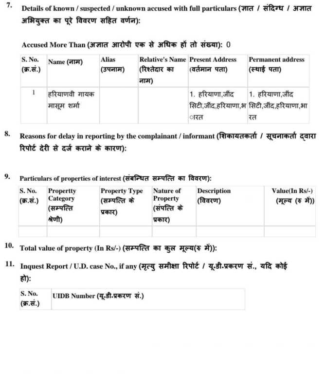 आज दिनांक 12.4.2026 को थाना डालनवाला पर प्रांचल नौनी (छात्र प्रतिनिधि) सत्यम शिवम छात्र संगठन डीएवी (पीजी) कॉलेज देहरादून द्वारा लिखित प्रार्थना पत्र बाबत दिनांक 11-4-2026 को डीएवी (पीजी) कॉलेज देहरादून में सांस्कृतिक सार्वजनिक कार्यक्रम के दौरान सार्वजनिक मंच से हरियाणवी लोक गायक मासूम शर्मा द्वारा मंच से अभद्र,