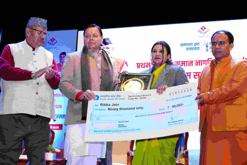 समारोह को संबोधित करते हुए मुख्यमंत्री श्री पुष्कर सिंह धामी ने कहा कि आज का दिन उत्तराखंड राज्य के इतिहास में स्वर्णिम अध्याय के रूप में अंकित रहेगा, इसी दिन राज्य में समान नागरिक संहिता लागू हुई है, जिससे समाज में सामाजिक न्याय, समानता और संवैधानिक मूल्यों की स्थापना सुनिश्चित हो सकी। उन्होंने कहा कि सनातन संस्कृति और परंपरा सदैव समरसता और समानता की संवाहक रही है। भगवान श्रीकृष्ण ने भी गीता में “समोहम सर्वभूतेषु न मे द्वेष्योस्ति न प्रियः” का उपदेश दिया है, जिसका अर्थ है कि मैं सभी प्राणियों के प्रति समान भाव रखता हूँ, न किसी का शत्रु हूँ और न ही किसी के प्रति पक्षपात करता हूँ। सनातन संस्कृति की यही महानता है, जिसने सदियों से दुनिया को समानता, न्याय और मानवता का मार्ग दिखाया है।