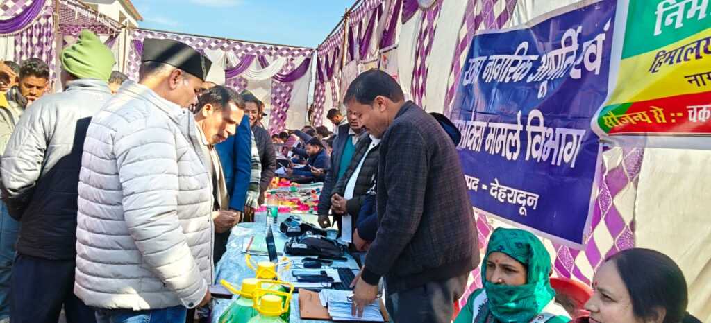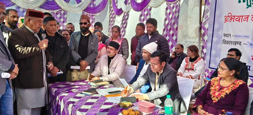 प्रदेश सरकार की महत्वाकांक्षी पहल ‘जन जन की सरकार, जन जन के द्वार, प्रशासन गांव की ओर’ अभियान के तहत मंगलवार को कालसी ब्लॉक के न्याय पंचायत नागथात खेल मैदान में उप जिलाधिकारी प्रेम लाल की अध्यक्षता में वृहद बहुउद्देशीय शिविर आयोजित किया गया। शिविर में ग्रामीणों को सरकार की अनेक जन कल्याणकारी योजनाओं की जानकारी दी गई और जन समस्याओं का मौके पर ही निस्तारण किया गया।