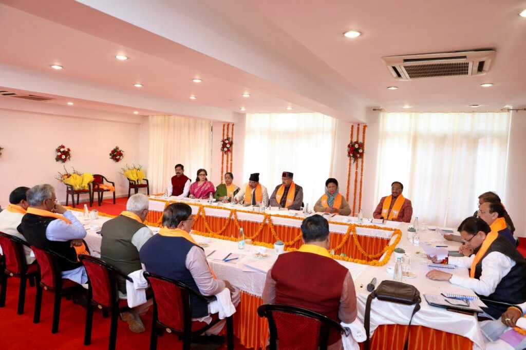 प्रदेश अध्यक्ष की अध्यक्षता में संपन्न इस बैठक में मुख्यमंत्री श्री पुष्कर सिंह धामी, केंद्रीय मंत्री श्री अजेय टम्टा, पूर्व मुख्यमंत्री मुख्यमंत्री डॉ रमेश पोखरियाल निशंक, पूर्व मुख्यमंत्री सांसद त्रिवेंद्र सिंह रावत, गढ़वाल सांसद एवं राष्ट्रीय मीडिया प्रभारी श्री अनिल बलूनी, नैनीताल सांसद श्री अजय भट्ट, टिहरी सांसद महारानी माला राज्यलक्ष्मी शाह, राज्यसभा सांसद श्री नरेश बंसल, श्रीमती कल्पना सैनी, प्रदेश महामंत्री संगठन श्री अजेय कुमार, प्रदेश कैबिनेट मंत्री श्री सतपाल महराज, डाक्टर धन सिंह रावत, पूर्व प्रदेशाध्यक्ष श्री मदन कौशिक शामिल हुए।