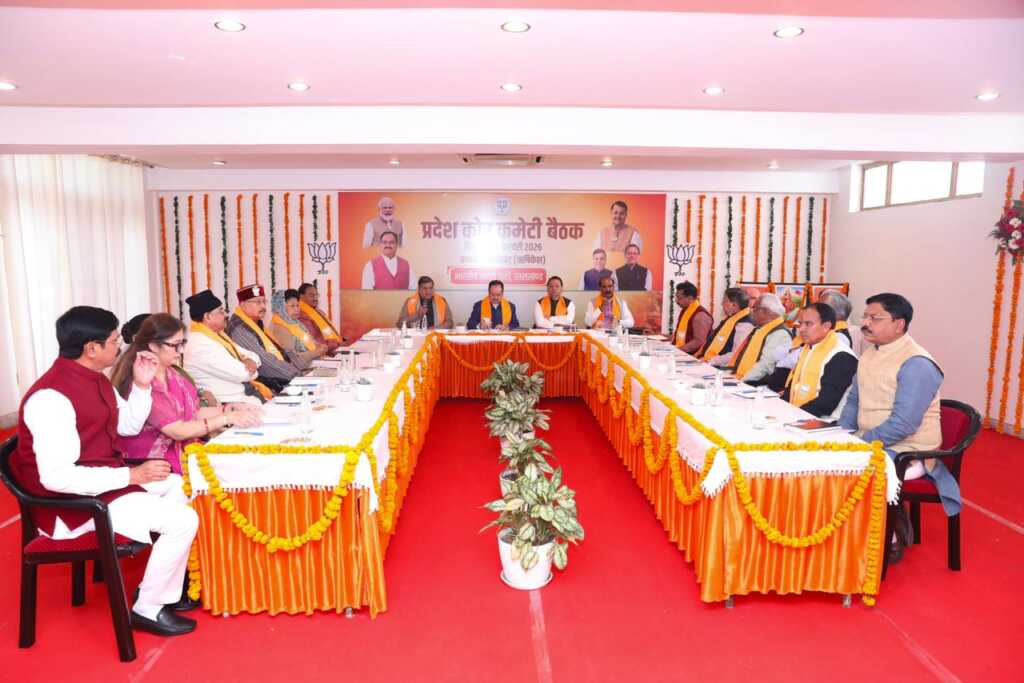 भट्ट ने कहा कि कोर कमेटी में संगठन के आयोजित कार्यक्रमों की विस्तृत समीक्षा की गई जिसमें सेवा, सुशासन, गरीब कल्याण के 11 साल संकल्प से सिद्धि तक, योग दिवस, एक पेड माँ के नाम, डॉ. श्यामा प्रसाद मुखर्जी स्मृति दिवस, आपातकाल का काला अध्याय (50वां वर्ष), तिरंगा यात्रा, विभाजन विभीषिका स्मृति दिवस, सेवा पखवाड़ा, आत्मनिर्भर भारत संकल्प अभियान, नेक्स्ट जेन जीएसटी रिफॉर्म, प्रदेश संगठनात्मक कार्यशाला, सरदार पटेल @ 150 यूनिटी मार्च, वंदे मातरम @ 150 वर्ष, जन-जन की सरकार जन-जन के द्वार, अटल स्मृति वर्ष 2025, बीर बाल दिवस, VB-G RAM G, बजट प्रचार अभियान ।