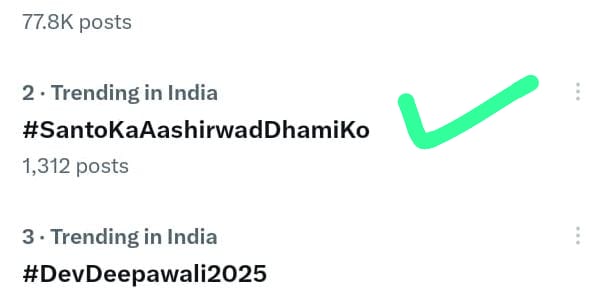 *सोशल मीडिया पर भी भक्ति-भावना की लहर छा गई — #SantoKaAshirwadDhamiKo ट्रेंड हुआ।*