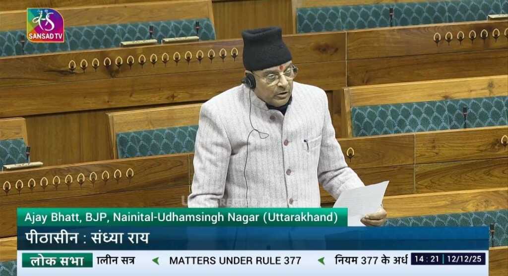 नैनीताल-उधम सिंह नगर संसदीय क्षेत्र के सांसद और पूर्व केंद्रीय राज्य मंत्री श्री अजय भट्ट ने सदन में नियम 377 के अधीन राज्य में विकासखंडों की संख्या बढ़ाए जाने की पुरजोर मांग उठाई।