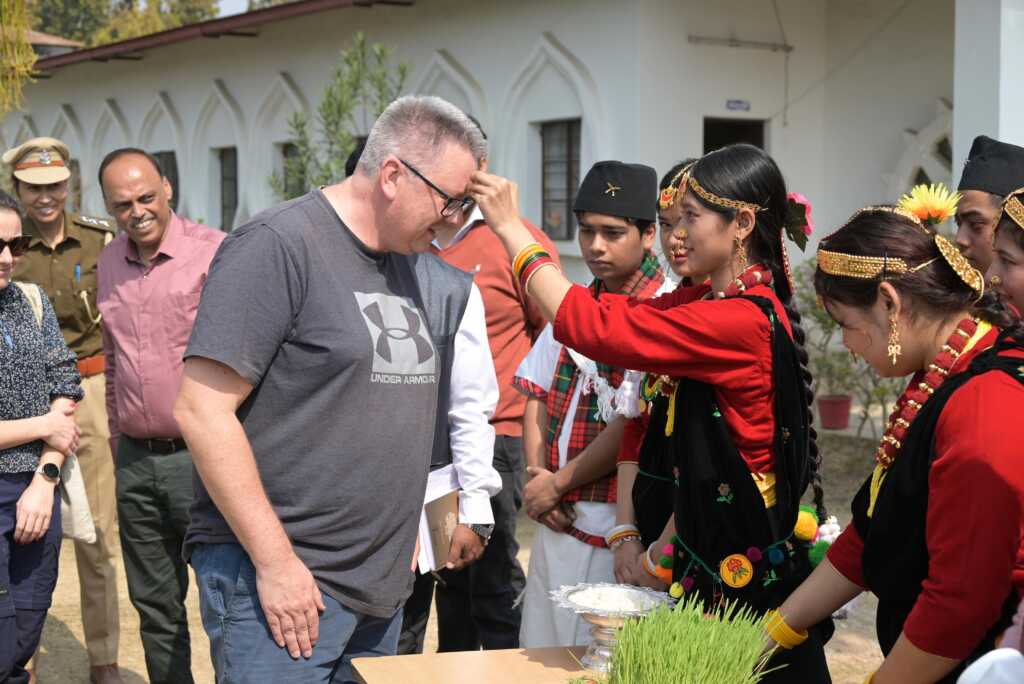 पुरोहितवाला के भ्रमण के उपरांत प्रतिनिधिमंडल मानव भारती एंगल हिल्स स्कूल पहुंचा, जहां स्थानीय नागरिकों ने उनका भव्य स्वागत किया। प्रतिनिधियों ने स्थानीय निवासियों से संवाद कर उनके अनुभव साझा किए तथा पर्यावरण संरक्षण के क्षेत्र में किए जा रहे कार्यों की सराहना की। इस अवसर पर प्रतिनिधिमंडल के सदस्यों ने विद्यालय परिसर में पौधारोपण भी किया।