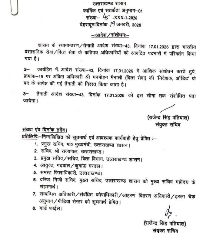 निदेशक ऑडिट के पद से मनमोहन मैनाली को हटाया गया, बड़ी खबर, आईएएस की जगह दी गई थी तैनाती,