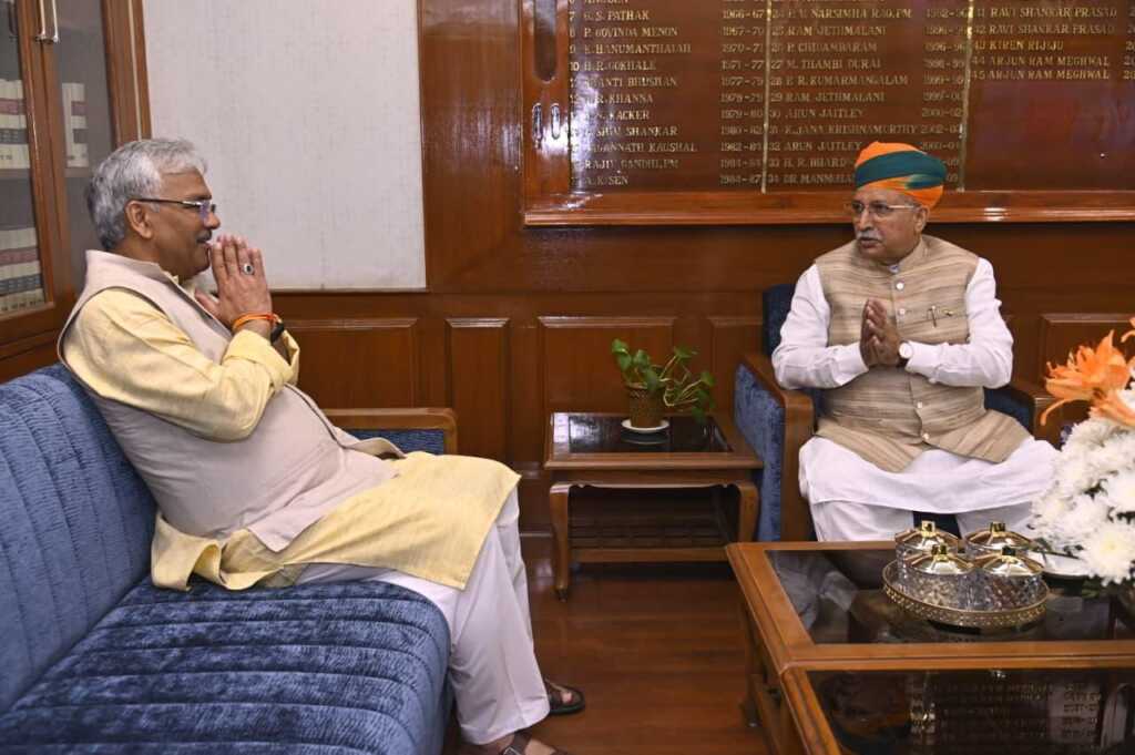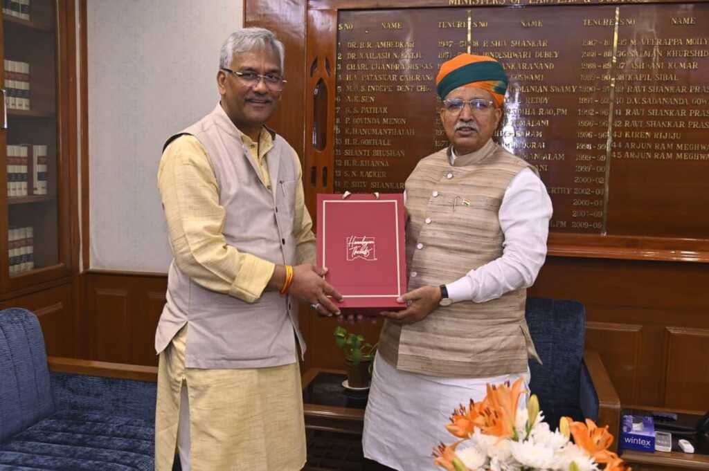 नई दिल्ली। नई दिल्ली में सांसद हरिद्वार एवं उत्तराखंड के पूर्व मुख्यमंत्री श्री त्रिवेन्द्र सिंह रावत ने भारत सरकार के केंद्रीय कानून एवं न्याय मंत्री श्री अर्जुन राम मेघवाल जी से भेंट की और उन्हें दीपोत्सव की अग्रिम शुभकामनाएं प्रेषित कीं।