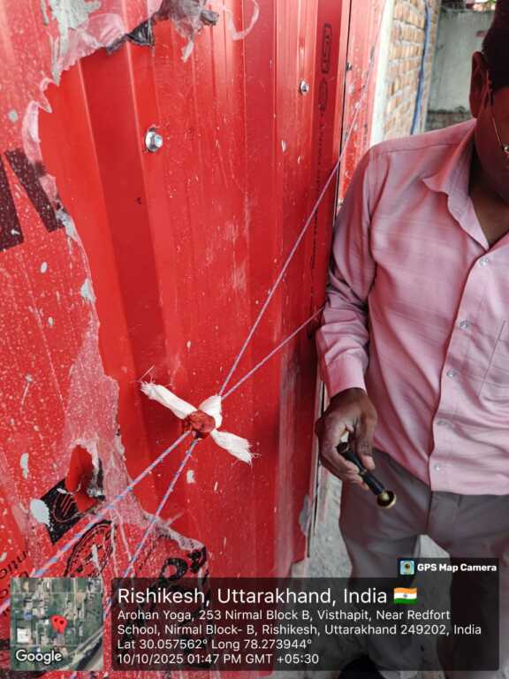 प्राधिकरण की संयुक्त प्रवर्तन टीम ने पुलिस बल की उपस्थिति में तुलसी देवी (विपरीत पोस्ट ऑफिस, बनखण्डी, ऋषिकेश), हरजीत सिंह (साईं विहार कॉलोनी, निकट सब्ज़ी मंडी), जयराम सेमवाल (आमबाग लेन नं. 01, विस्थापित, विपरीत THDC कार्यालय), लालमणी भट्ट (आमबाग लेन नं. 01, विस्थापित), रवी गुप्ता (आमबाग लेन नं. 02, विस्थापित), विक्रम सिंह बिष्ट (आमबाग लेन नं. 02, विस्थापित), प्रमोद सेमवाल (आमबाग लेन नं. 02, विस्थापित), जय चौहान (निर्मल बाग लेन नं. 10, ब्लॉक-‘बी’, विस्थापित), सगुन शर्मा (निर्मल बाग लेन नं. 11, ब्लॉक-‘बी’, विस्थापित) तथा प्रमोद चौहान (विपरीत गंगा फार्मेसी, निकट इंडियन ऑयल पंप, स्यामपुर, ऋषिकेश) द्वारा किए गए अवैध निर्माणों पर नियमानुसार सीलिंग की कार्रवाई की।