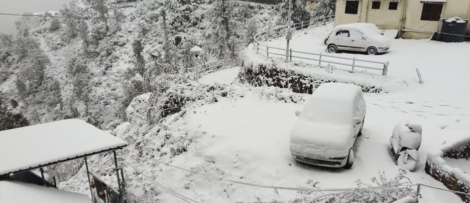 शुक्रवार को मसूरी में सुबह नौ बजे के करीब बर्फबारी शुरू हो गई और रात तक रुक रुककर बर्फबारी हुई है। शहर में करीब चार इंच और ऊंचाई वाले स्थानों पर छह इंच से अधिक बर्फबारी हुई है। बर्फबारी की सूचना पर बड़ी संख्या में सैलानी देहरादून सहित आसपास के क्षेत्रों से मसूरी पहुंचे और जमकर मस्ती की।