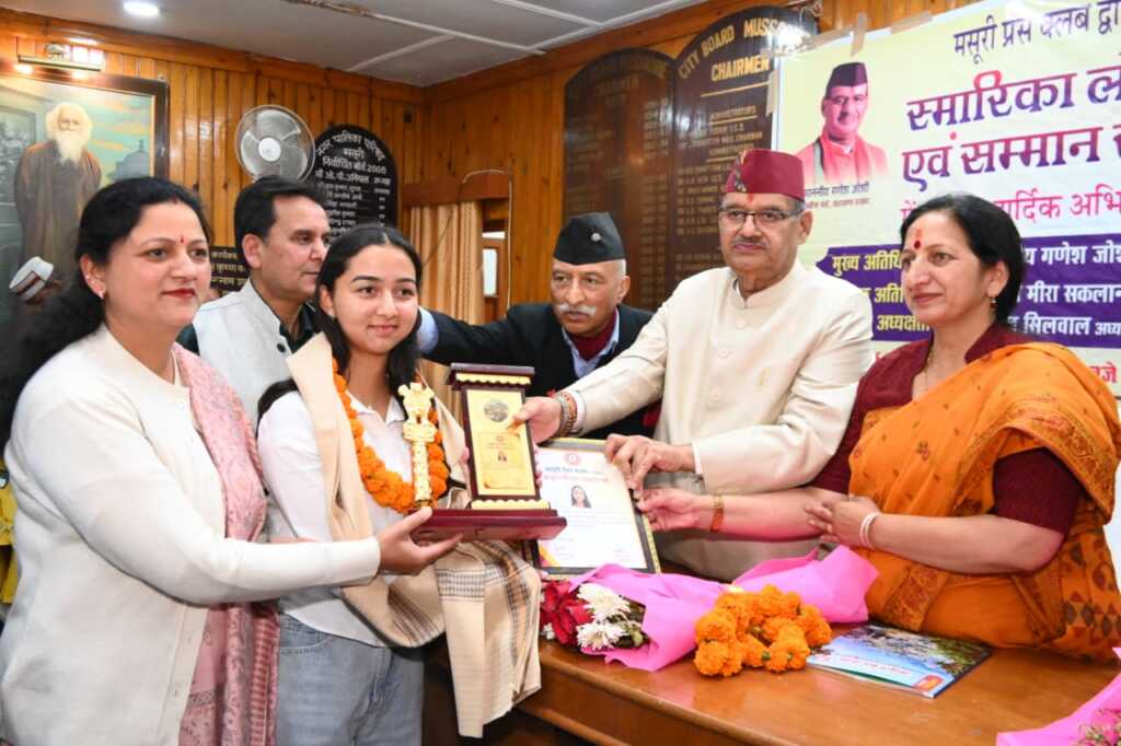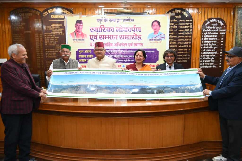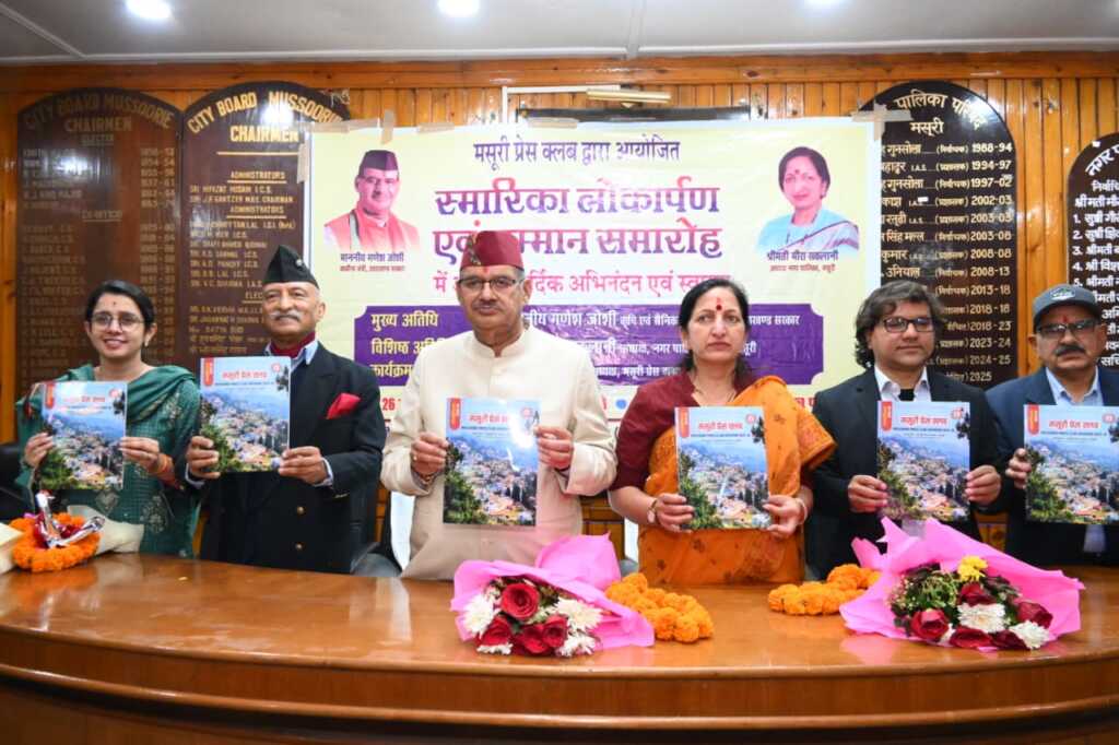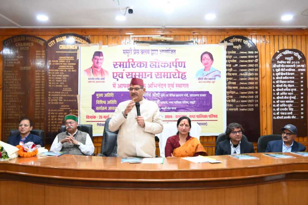 मसूरी, 26 मार्च। कैबिनेट मंत्री गणेश जोशी ने आज मसूरी नगर पालिका सभागार में मसूरी प्रेस क्लब द्वारा आयोजित स्मारिका लोकार्पण एवं सम्मान समारोह में प्रतिभाग किया। इस अवसर पर उन्होंने प्रेस क्लब द्वारा प्रकाशित स्मारिका 2025-26 का विधिवत विमोचन किया। कार्यक्रम के दौरान समाज के विभिन्न क्षेत्रों में उत्कृष्ट कार्य करने वाले व्यक्तित्वों को भी सम्मानित किया गया।