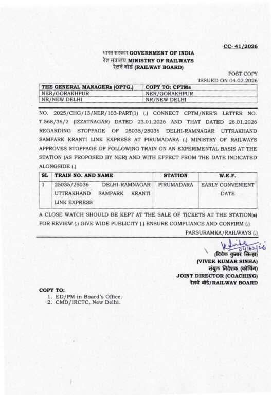 अब पिरुमदारा में भी रुकेगी उत्तराखंड संपर्क क्रांति एक्सप्रेस!
