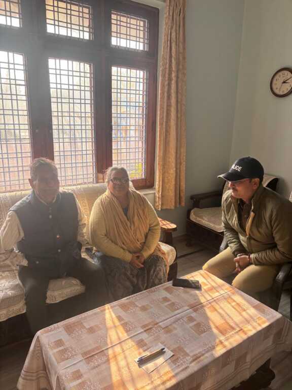 उक्त आदेशों के अनुपालन में आज दिनांक 06-12-25 को दून पुलिस द्वारा सीनियर सिटीजन्स से मुलाकात कर उनकी कुशलता पूछते हुए उनसे उनकी समस्याओं के संबंध में जानकारी ली गयी, साथ ही उन्हें किसी भी प्रकार की आवश्यकता पडने पर सहायता हेतु चीता पुलिस तथा उच्चाधिकारियों के मोबाइल नम्बर उपलब्ध कराये गये। इसके अतिरिक्त पुलिस टीम द्वारा सभी बुजुर्गों को साइबर क्राइम के सम्बन्ध में भी जागरूक किया गया। सभी बुजुर्गों ने दून पुलिस द्वारा की जा रही पहल की प्रशंसा करते हुए पुलिस कर्मियों के सर पर हाथ फेरकर उन्हें अपना आशीर्वाद दिया।
