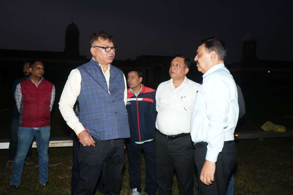 व्यवस्थाओं का जायजा लिया और सभी व्यवस्थाओं को समयबद्व तरीके से चाक चौबंद करने के निर्देश दिए। इस दौरान गढ़वाल आयुक्त एवं सूचना महानिदेशक ने मुख्य पंडाल, स्टेज डिजाइन एवं लेआउट को लेकर इंजीनियर्स के साथ विस्तार से चर्चा की। साथ ही वीआईपी, वीवीआईपी और कार्यक्रम में प्रतिभाग करने के लिए आम जनता हेतु बैठने की उचित व्यवस्था, पार्किंग, प्रवेश एवं निकासी आदि व्यवस्थाएं का भी जायजा लिया। निरीक्षण के दौरान अपर निदेशक सूचना आशीष त्रिपाठी, व्यवस्था अधिकारी रामपाल रावत सहित अन्य वरिष्ठ अधिकारी मौजूद थे।