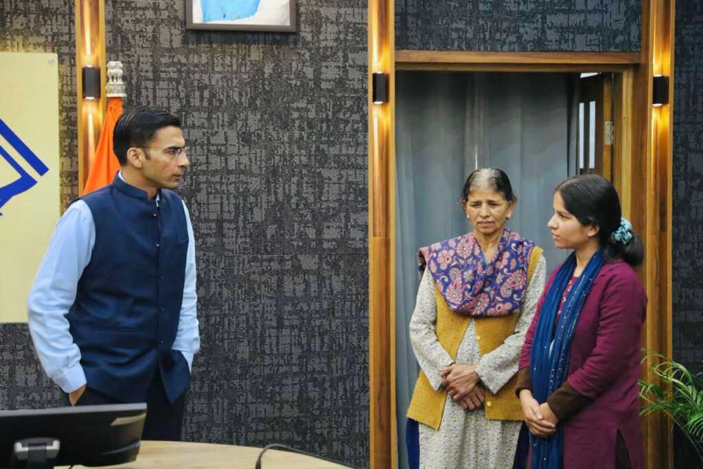 देहरादून चन्द्रबनी निवासी प्रियंका कुकरेती ने माह अक्टूबर में अपनी माता संग जिलाधिकारी सविन बंसल से उनके कार्यालय कक्ष में मिलकर गुहार लगाई थी कि उनकेे परिवार की आर्थिक स्थिति बेहद खराब है, पिता की वर्ष 2021 में मृत्यु हो गई है भाई दिव्यांग है। जिस पर जिला प्रशासन ने प्रियंका को रायफल फंड से 25 हजार आर्थिक सहायता प्रदान की थी। प्रियंका द्वारा जिलाधिकारी से रोजगार दिलाने का अनुरोध किया गया था जिस पर प्रियंका को उनकी योग्यता के अनुसार निजी शैक्षिण संस्थान में रोजगार दिलाया था। निजी संस्थान में नौकरी मिलने उपरांत अपनी माता संग जिला प्रशासन का धन्यवाद करने कलेक्ट्रेट पहुंची प्रियंका ने जिलाधिकारी से मुलाकात कर उनका व उनकी टीम का धन्यवाद किया।