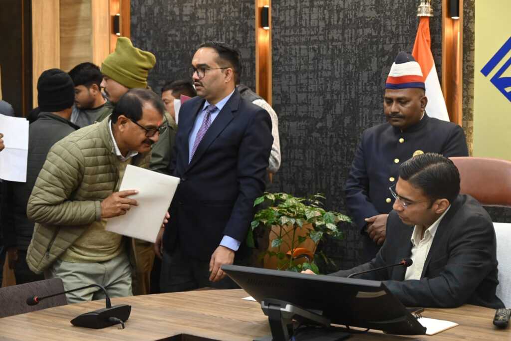 जन सुनवाई में मोहना निवासी मोहन सिंह, सुशीला देवी, कालू राम आदि ने बताया कि 50-60 वर्षाे से मजदूरी करते हुए मोहना में निवास करते है। उन्होंने भूमि का पट्टा दिलाए जाने की गुहार लगाई। इस दौरान पीडित लोगों ने भूमि का सीमांकन, रजिस्ट्री, अवैध कब्जा हटवाने से जुड़ी तमाम शिकायतें और समस्याएं जिलाधिकारी के समक्ष रखी। जनता दरबार में एसडीमए स्मृता परमार, एसडीएम अपूर्वा सिंह, एसडीएम विनोद कुमार, परियोजना निदेशक विक्रम सिंह, जिला प्रोबेशन अधिकारी मीना बिष्ट, जिला समाज कल्याण अधिकारी दीपांकर घिल्डियाल सहित विभिन्न विभागों के जिला स्तरीय अधिकारी मौजूद थे।