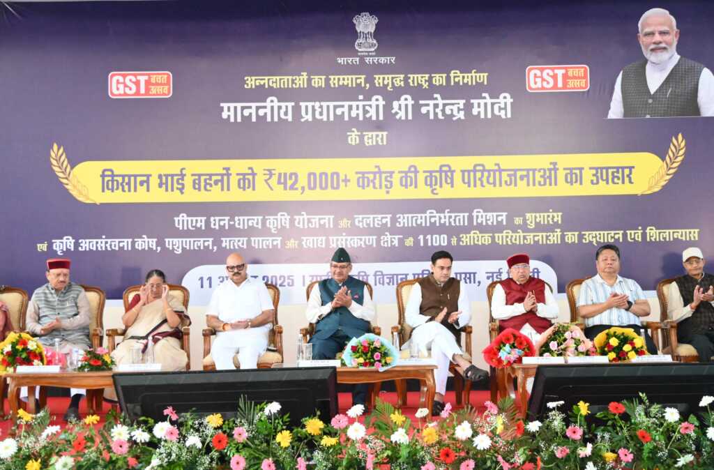 प्रधानमंत्री नरेंद्र मोदी ने राष्ट्रीय कृषि विज्ञान परिसर, पूसा (नई दिल्ली) से “पीएम धन-धान्य कृषि योजना” एवं “दलहन आत्मनिर्भरता मिशन” का शुभारंभ किया। साथ ही उन्होंने कृषि, पशुपालन, मत्स्य पालन एवं खाद्य प्रसंस्करण से जुड़ी 1100 से अधिक परियोजनाओं का उद्घाटन एवं शिलान्यास भी किया।