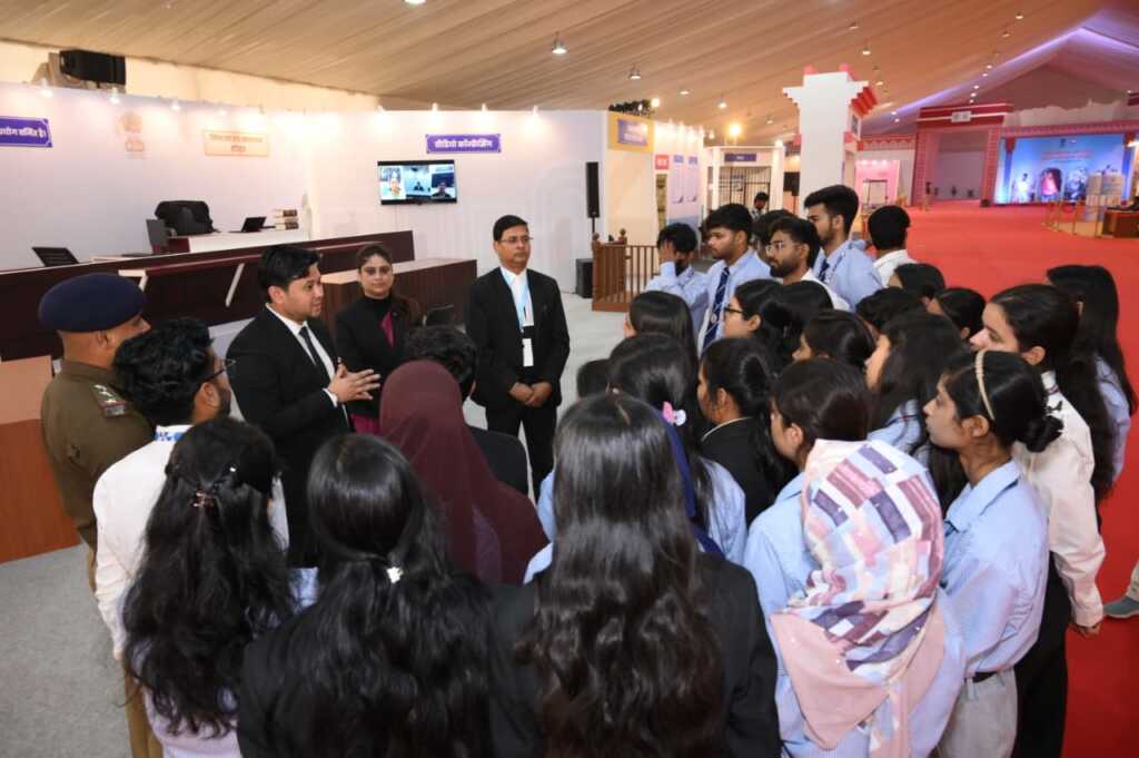 *प्रदर्शनी के तीसरे दिन आज, 09 मार्च 2026* को हरिद्वार जनपद के विभिन्न प्रतिष्ठित शिक्षण संस्थानों के छात्र-छात्राओं ने बढ़-चढ़कर प्रतिभाग किया। इसमें मुख्य रूप से *कोर यूनिवर्सिटी (CORE) हरिद्वार, कस्तूरबा गांधी बालिका आवासीय विद्यालय, पुलिस मॉडर्न स्कूल (40वीं बटालियन) और कन्या इंटर कॉलेज सडौली के विद्यार्थी एवं लॉ फैकल्टी* प्रदर्शनी में शामिल हुए। पुलिस अधिकारियों और विशेषज्ञों द्वारा छात्र-छात्राओं को न्याय संहिताओं की बारीकियों को सरल और जानकारीपूर्ण तरीके से समझाया गया।