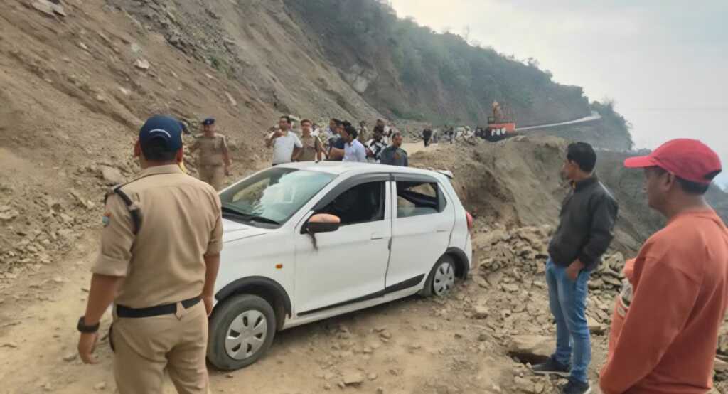 ऋषिकेश-गंगोत्री हाईवे पर हादसा: बगड़धार में टिहरी जा रही कार पर गिरा बोल्डर, बाल-बाल बचे दंपती